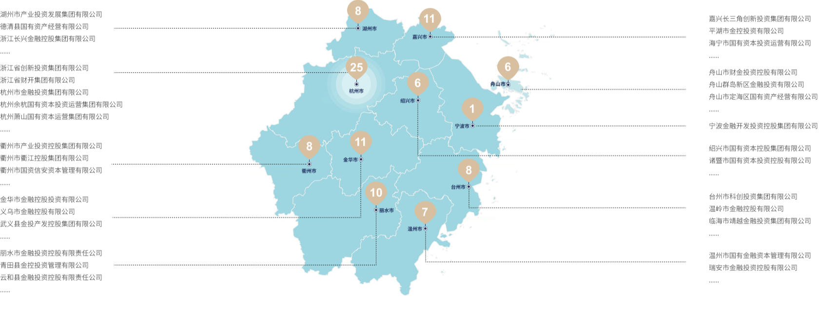 浙江省金控企業(yè)聯(lián)合會,是浙江區(qū)域范圍內(nèi)國有獨(dú)資或控股的金控、類金控公司以及浙江省創(chuàng)新投資集團(tuán)有限公司參控股的重要機(jī)構(gòu)共同聯(lián)合發(fā)起成立,倡導(dǎo)“共商、共創(chuàng)、共享、共贏”理念,服務(wù)浙江經(jīng)濟(jì)高質(zhì)量發(fā)展的協(xié)會組織。浙江省創(chuàng)新投資集團(tuán)有限公司為主發(fā)起人和會長單位,溫州市國有金融資本管理有限公司、臺州市科創(chuàng)投資集團(tuán)有限公司、金華市金融控股投資有限公司、舟山市財金投資控股有限公司為聯(lián)合發(fā)起人。目前,浙江金聯(lián)共167家會員單位,分布于地市縣區(qū)金控101家,省金控參控股及關(guān)聯(lián)企業(yè)28家,省屬企業(yè)的金控類金控13家,頭部股權(quán)投資機(jī)構(gòu)25家。
