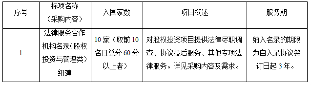 一、項目名稱:法律服務(wù)合作機構(gòu)名錄(股權(quán)投資與管理類)組建項目
