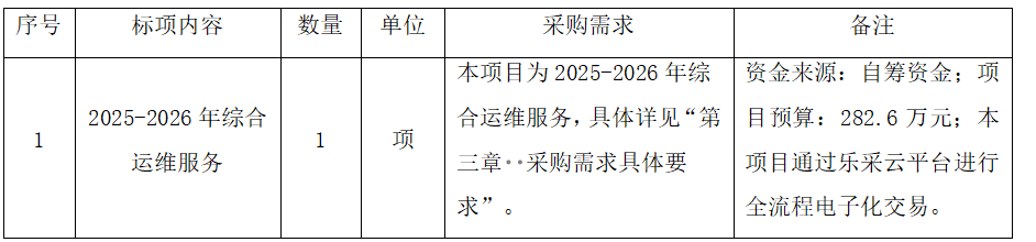 一、招標項目名稱:2025-2026年綜合運維服務項目